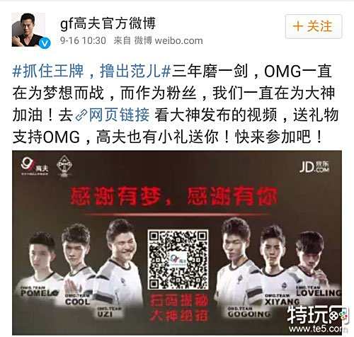 相信高夫之所以会选择OMG电子竞技俱乐部,不仅是因为他们有着帅气的形象,更是因为他们有着日夜苦练,不懈奋斗的拼搏精神。这是时尚与电竞的结合,这是战队多元化发展的可能,我们的最强转位选手冰封夕阳也在微博上po出了他的帅照。