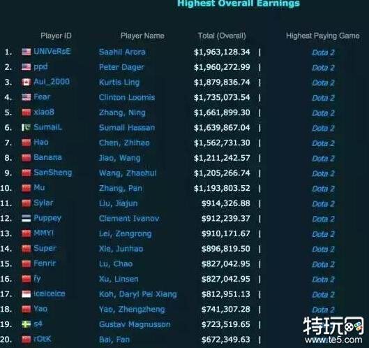 近日,国外著名的体育媒体ESPN公布了全球电子竞技职业选手的收入排行,让我们先来看看榜单都有谁。