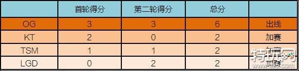 经过推演,LGD仍存有多种出线可能性,LGD三连胜的话当然可以获得最多的出线的积分组合方式;而且还有最乐观的LGD输一场仍旧出线的可能性——只要OG在第二轮达成三连胜并且KT吃到三连败,LGD输而且也只可以输给OG一场,这样还有通过加赛晋级的希望。下方的表格就是D组可能出现的最“混沌”的积分状态,OG第二轮全胜,KT第二轮全败,LGD胜KT和TSM,D组同时出现三支二胜四负的队伍,最终通过加赛来决定八强名额的归属。