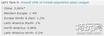 mOaOt:你搞错了吧,不是韩国人扼杀了电竞,而是韩国人的统治力推动了电竞文化的蓬勃发展,让我们看看数据吧,在韩国超过10%的人玩LOL: