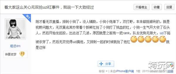 挂机事件还没结束,最近UZI又被论坛网友爆料消极游戏。