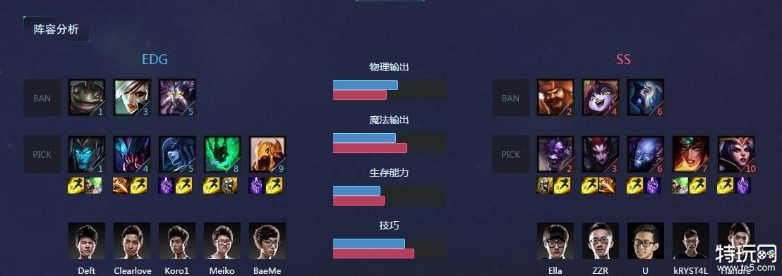 拿到五杀后的圣枪哥瞬间起飞,随后的团战更是如鱼得水。但EDG后期通过卖扣肉的方式偷掉大龙。Krystal卖命留下EDG数人,但最终EDG仍旧占了不少便宜。凭借大龙Buff,EDG对Snake进行了一定的压制,先后推掉Snake的中下高地。其中圣枪哥不明智的杂耍让EDG留下成为比赛的关键。最终EDG抓住机会一举攻破Snake基地赢下比赛。