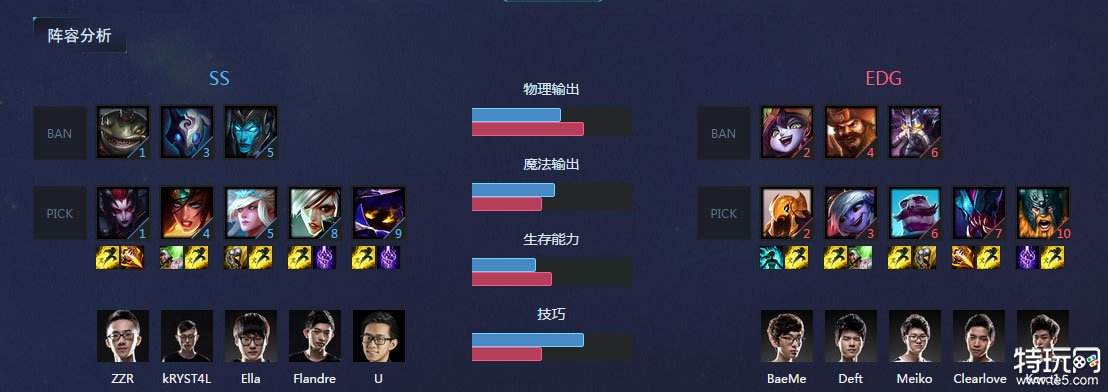 总的来说Snake的阵容前期输出非常依靠中上两路,而EDG的阵容则非常平均,而奥拉夫则特别克制小法的控制。
