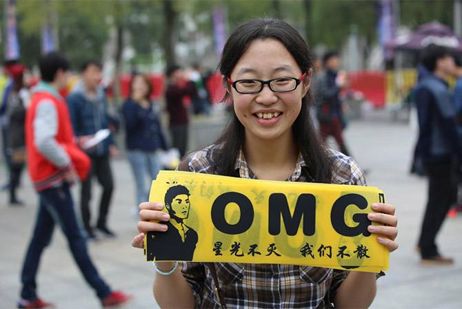 在现场,我们看到了一个OMG的女粉丝组成的参观团。她们自制了OMG的加油手巾并将其免费发放给如同她们一样热爱OMG的人,这是极其让人感触的。