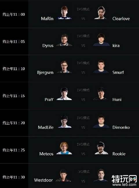 因为本次赛事有六大赛区总共三十名正式选手参加全明星的比赛,故而我们LPL赛区的ADC狂小狗UZI,以及台湾LMS赛区的打野狮子王KARSA将在首轮轮空,也就是说在首日的首轮对战中,将会有十四组对决在SOLO大赛上开战,以决出下一轮16强的名额。因为本次大赛有来自各大赛区的选手,并且还有来自外卡赛区的选手在,所以小编为了让粉丝们更加了解这些参加SOLO大赛的明星选手们的情况,故而在这里带领大家详细解析一下这首轮十四组SOLO大赛的对决分析,也让大家对于全明星赛的SOLO大赛有一个清晰的了解和认识。