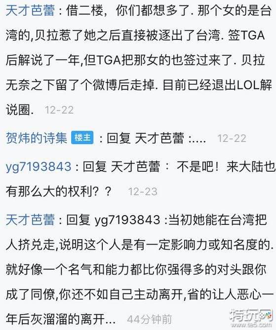 但是也有人觉得解说不会有这么大的权利,贝拉得罪的可能是高层领导,总之呢,就是各种猜测满天飞,一个不小心“贝拉怎么了”就成了贴吧搜索热门!