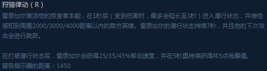 狮子的大招是新手玩家们唯一能够保证让你准确跳到敌人脆皮身上并且击杀他的技能,每一个大招所带来的收获都弥足珍贵。使用大招后,延迟1秒(受到伤害时最多延迟3秒)进入潜行状态,并且能够感知到大范围内敌方英雄(简单的说就是能够直接看到范围内的敌方英雄),潜行状态下,下次普攻会进行跳跃。