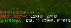 英雄联盟能够吸引众多玩家的一个因素在于游戏中有不少女玩家,能与女玩家一起征战召唤师峡谷也是一件有趣的事情。此种情况就是来自于女玩家中的一小部分。她们的游戏水平并不算高,在游戏开始后,发现对面战斗力较高,或在对线前,或在被击杀后,会在“所有人”频道冒出一句“我是妹子,别打我”。而此刻场面上气氛瞬间就会有所不同。整天抱着基友玩却向往有异性朋友的玩家,眼前已经一亮,作为队友的已经想好如何帮助妹子取得线上优势,对线的则开始放起了水,心里都盘算着怎么搭讪,等游戏结束加好友也是不可避免。已有女朋友或者注定孤老终身的敌对玩家则加大了对线压迫的力度,誓要完虐妹子,不留情面。而还有一波玩家,也是小编这类玩家,则用“我也是妹子啊”予以还击,不仅成功调侃,也为万一没有打过妹子留有后路,毕竟万一妹子最后来一句,“嘁,妹子都打不过”,还是挺囧的。
