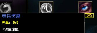 坚决系的老兵伤痕能够提供50点最大生命值,这样一来与多兰剑的血量差距就只剩下30点了。