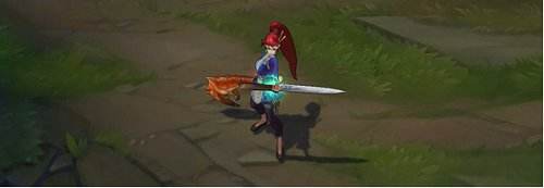 在模型中,我们能看到蕾欧娜的武器很有意思。左手的剑变成了叉着香肠的香肠叉,右手变成了烧烤炉。而且在烧烤炉的中间还有似乎还在加热。在这款皮肤中,我们甚至能清楚地看到他衣服上的纽扣。非常细致。
