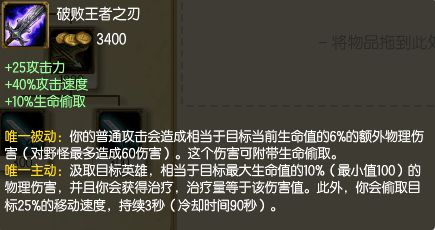 由于三项之力的改动,移除了暴击几率,尽管增加了攻击速度和冷却缩减,却不适用于亚索,而且合成价格太贵(3733金币),会拖慢亚索在游戏中期的节奏。