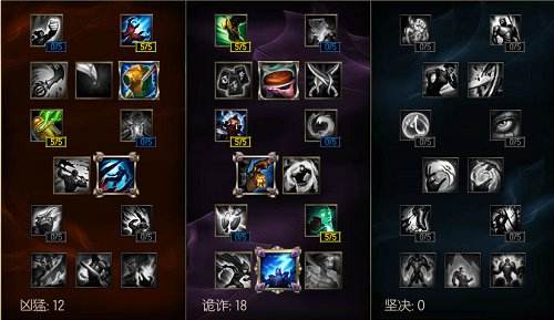 辅助女枪的天赋方面凶猛点出12点,诡诈点出18点,具体分配方案如上图。值得注意的是,凶猛系第一栏点出“巫术”,因为辅助女枪主要是靠技能输出的,第五栏点出“恃强凌弱”,这样在使用e技能消耗时,会打出更高的伤害。在诡诈系,探云手天赋可以帮你获得更高的经济,基石天赋点出雷霆领主的法令,增强爆发伤害能力。