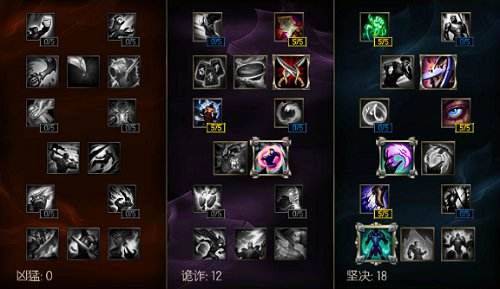 既然是坦克,那么传统的不灭之握就是慎的主流天赋,热诚雷霆虽好,但也不能贪心。在坚决系中,我放弃了符能盔甲而直接选择了老兵伤痕的50点生命值加成,这在初期是非常实用的。洞悉和耐久也曾让我犹豫,但是慎打团对闪现的需求很大,最后被我放弃了耐久,但是特殊情况下,还是可以选择的。