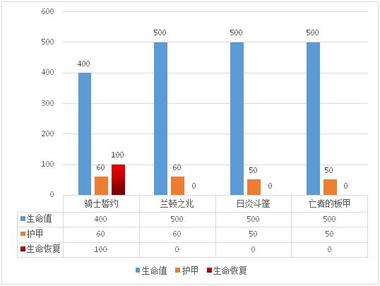 可以看到,相比同类型的防御装,骑士誓约仅仅少了100点生命值,但就护甲而言要比日炎以及板甲高了10点,同时骑士誓约还有其他几件防御装所不具备的生命恢复。在属性相差不多的情况下,骑士誓约还有一个最大的优势,那就是其他防御装的价格为2900G,而骑士誓约作为辅助装,它的价格仅有2400G,整整比其他防御装少了500G的价格。
