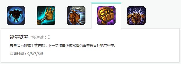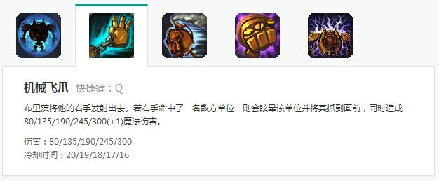 此技能是机器人上下限的关键所在,机器人的好坏在于Q技能的命中,对线期冷却较长,一旦落空很容易被反压制,机器人的威慑力就是Q技能命中后形成敌人落单,己方以多打少的优势,有几个必须要注意的点就是:
