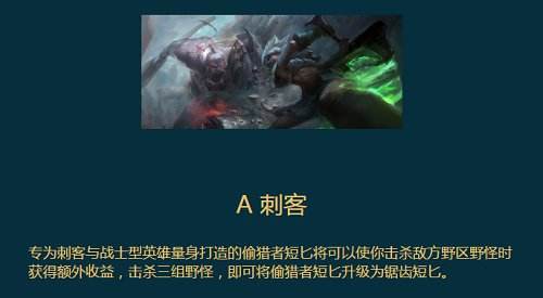 依据:专为刺客与战士型英雄量身打造的偷猎者短匕将可以使你击杀敌方野区野怪时获得额外收益,击杀三组野怪,即可将偷猎者短匕升级为锯齿短匕。