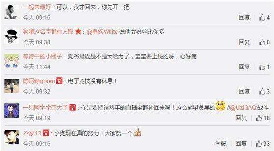 粉丝们都纷纷留言,希望小狗可以爱惜身体,直播时间不要这么狂躁...