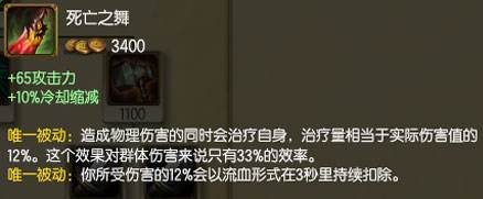 在游戏中经常有被玩家忽视或者过分低估的神器装备,今天小编就为大家分析一波死亡之舞这件适合众多半肉战士拿出来的神器。