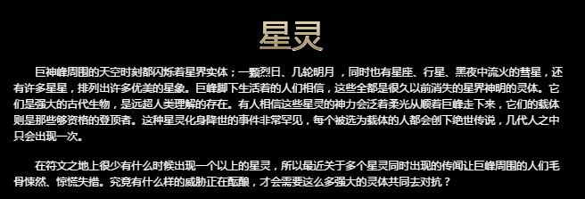 “巨神峰是符文大陆的世界之巅,这座高耸入云的山峰完全由坚硬的山石构成,终年沐浴着烈日阳光,永远俯视着脚下的群山,恢弘磅礴举世无双。巨神峰坐落于远离文明的无人之地,对于许多人都是遥不可及的,只有那些意志最坚决的追寻者有幸一睹尊容。”