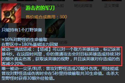 红色惩戒打野刀:惩戒可以对一个英雄释放,标记该英雄四秒,在这段时间里,你的普攻会对目标英雄造成持续三秒的额外真实伤害,获得该英雄的视野,并且使该英雄对你造成的伤害减少20%