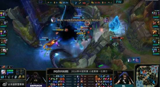 首日第二局对决,由FW战队对上G2战队,可以说前期G2节奏非常好,但是FW抓住对手失误稳住了局势,并在后期打出阵容的强势。双方打野互强对方一条大龙也算是礼尚往来,最终FW成功取得1分。