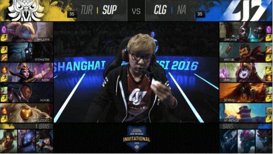 首先来看下一BP,可以看到外卡队伍SUP非常针对了CLG在昨天的比赛当中表现不错的英雄,而CLG反手BAN掉了开团很强的英雄予以针对。