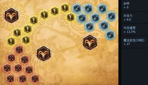 精华3个攻速、红色9个攻击、黄色9个护甲、蓝色9个成长魔抗