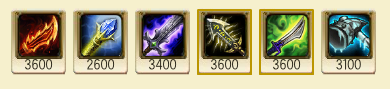 点评:这样出的优势是有CD,有攻击力,而且峰刺+攻速鞋=70%的攻速完全足够了,清线很快,审判天使前期要做的就是疯狂发育,蓝buff,如果打野不给,F6必须要拿。