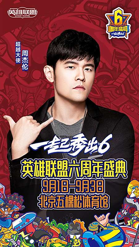 《英雄联盟》六周年庆狂欢盛典即将于9月1日至9月3日在北京五棵松体育馆进行。作为召唤师一年一度的狂欢盛典,今年在六周年庆典现场,将会带来《英雄联盟》职业联赛夏季赛总决赛、2017全球总决赛LPL代表队选拔、全英雄全皮肤福利抽奖、重磅福利活动公布以及全新内容发布等多个重磅内容,除此之外,9月3日,《英雄联盟》明星召唤师周杰伦还将作为队长,与全新明星召唤师“酷秀大使”吴亦凡队长领衔的队伍展开一场精彩的明星表演赛。
