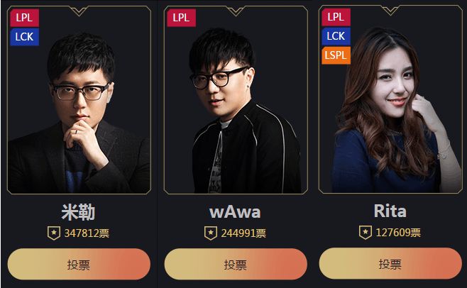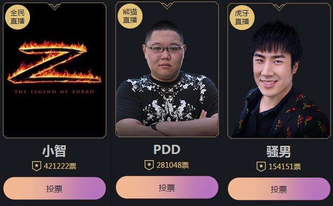 各奖项第一名的得票数都遥遥领先,年度最受欢迎选手与赛事解说奖将分别非UZI与米勒莫属,年度优秀主播则可能在小智与PDD中间产生!