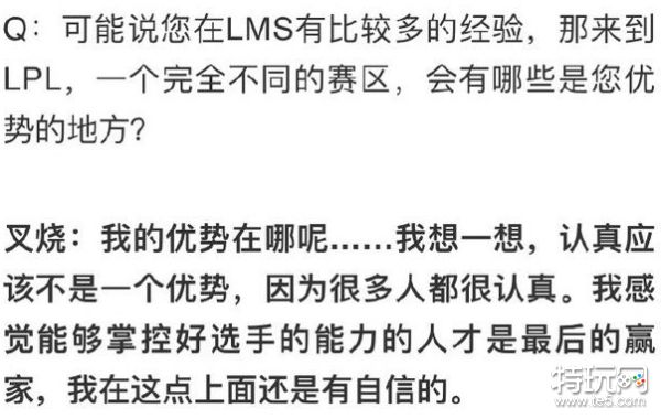有网友扒出了叉烧刚刚来到LPL的时候,对他专访的一篇内容,在这篇采访中,叉烧所说的言论,基本上都已经实现了。比如当时对SN队员点评的时候,叉烧就表示:SN很多老选手,大家的个人能力很强,只要融合在一起,打出适合自己的打法就可以了。现在SN的确是三位老选手,maple、蛇蛇和SMLZ,比起春季赛来说,现在的配合默契十足。
