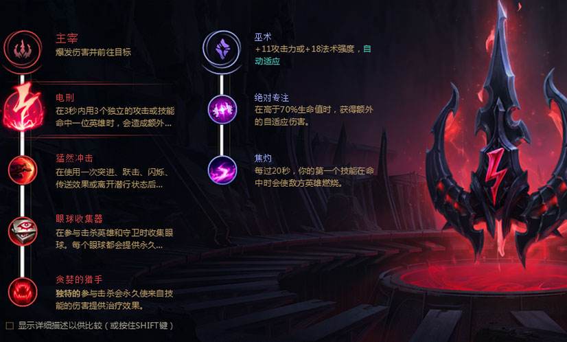 主动效果:在6秒的持续时间里,菲兹的攻击会在命中时造成额外的10/20/30/40/50(+0.25*法术强度)魔法伤害。