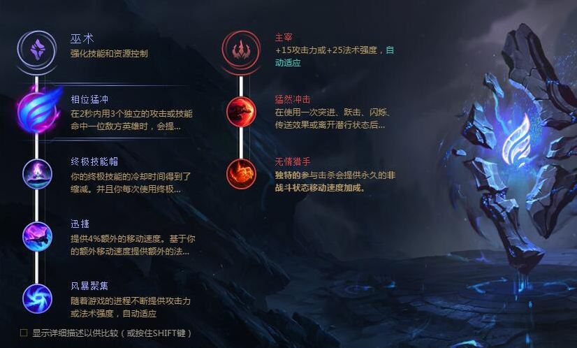 泰隆传送到敌方目标外侧,使目标减速99%,持续0.25秒,并使泰隆对目标造成的伤害提升3/6/9/12/15%,持续3秒。