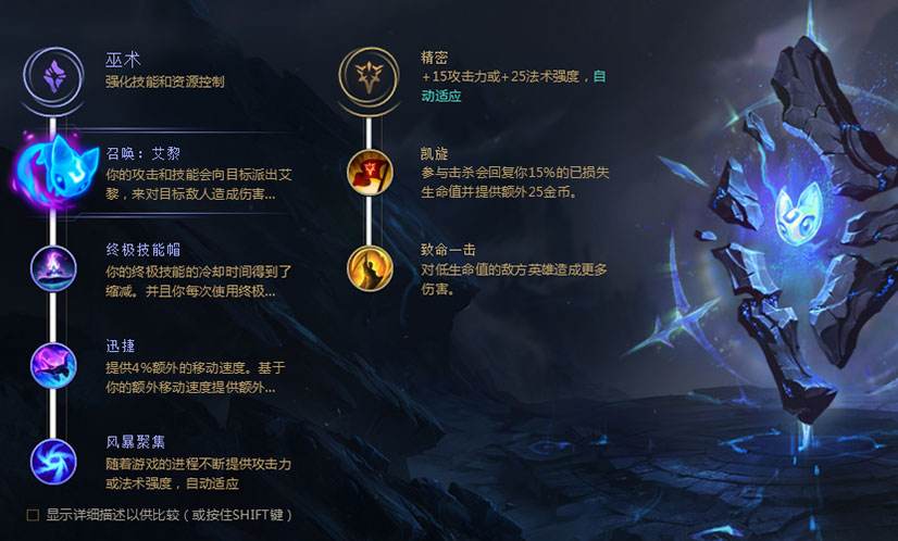 凯南快速移动,移动速度提升335,并可以穿越单位,对沿途的敌人造成 85/125/165/205/245(+0.6*法术强度)魔法伤害,持续2秒。此外凯南将获得10/20/30/40/50护甲和魔法抗性加成,持续4秒。