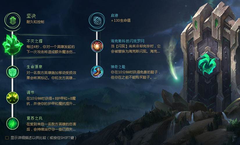 激活:蒙多医生对周围敌人造成每秒35/50/65/80/95(+0.2*法术强度)点魔法伤害,并减少所受控制技能效果10/15/20/25/30%的持续时间。