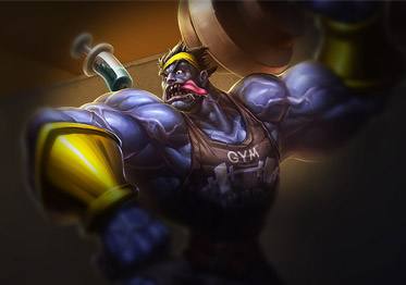 石头人线上能力不强,大多数的上单英雄都能压制他,前期要用平砍不停的消耗石头人,避免让他的护盾重生,6级后要小心他用大招配合队友GANK,压制住他,就能轻轻松松取得优势!