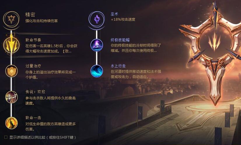主动:获得20/30/40/50/60%攻击速度加成,持续6秒,并且她的普通攻击会使目标所受治疗及生命回复降低50%,持续2秒。