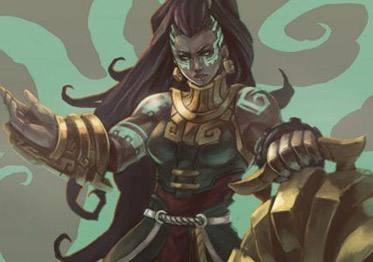 主动:俄洛伊朝一个方向放出触须,命中一个敌方英雄后可将对方的灵魂扯向自己。当俄洛伊和她的盟友攻击灵魂时,会将一部分伤害传递到本体身上。如果俄洛伊和盟友摧毁了灵魂,或是英雄的本体逃开自己的灵魂太远时,就会被大幅减速,并在周围生出触手,攻击自己以及盟友。触手会攻击灵魂与本体,对所有命中的敌人造成25/30/35/40/45%(+0.08每100AD)物理伤害。