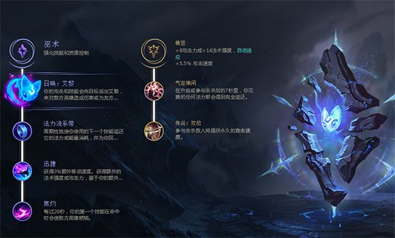 无状态选用巫术系作为主系符文,沙皇手长,可以很简单触发艾黎,配上焦灼可以增加消耗能力,法力流系带和气定神闲增加线上持久能力,迅捷提高游走能力,适合比赛使用。