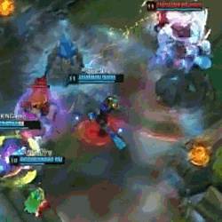 由于塔姆的大招可携带一个队友,我们既可以用于补线,也可以一起去支援其他路,找机会强拆一个塔也是不错的选择。中后期的团战塔姆尽量与C位在一起,毕竟W技能是一个非常强的保护技能,更多的时候也能转线支援,利用运营击败对手。