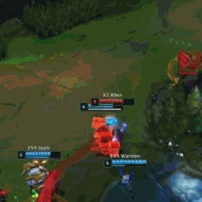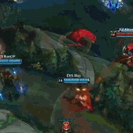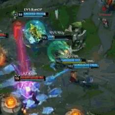 后期EVS凭借仅存的大龙buff进行中推,Khan的俄洛伊也在带线,虽说带掉了高地塔但是己方被破一路,而EVS过于贪心被TP回来的俄洛伊所包围。之后KZ成功拿下第三条火龙,在巨大的经济优势下大龙逼团,而俄洛伊也多次利用E技能消耗对手,最终rush掉大龙,随着一波推进打出0换5,KZ赢得了比赛。