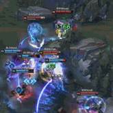 后期:24分钟时,相同的剧情再次上演,BLG辅助派克前去龙区做视野被梦魇开大配合队友击杀随后RW佯装大龙,前来探视野的莫甘娜被杀。28分钟,RW野辅成功在蓝色方蓝BUFF开团,BLG野辅阵亡,在转向大龙的途中,诺手前来仍被击杀。RW成功拿下大龙。30分钟时瑞兹在自家红BUFF野区被抓,RW0换4BLG,一波比赛。