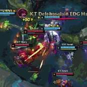 中期:KT凭借着阵容强势有压制住EDG,拿到些许的经济领先,但是EDG凭借着中上的优势发挥撑住劣势,并且在27分钟野辅发威找到机会开团完成一换四,随后快速的推进扩大经济领先并确立胜势。