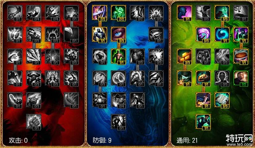 频繁游走未必选择0 9 21 的天赋,因为游走完全要依靠R技能的释放,往往这样的天赋让你在线上难以保主ADC的发育,与队友沟通不顺还浪费了天赋的功能。
