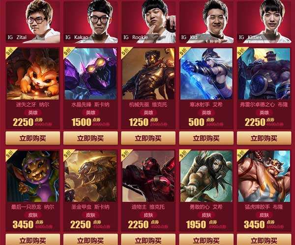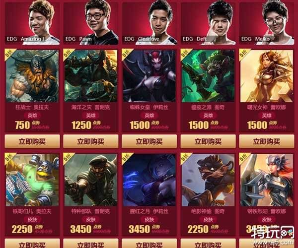 同时我们也选出两队的出征阵容进行半价优惠活动,以回馈给广大关注并支持LPL战队的玩家。