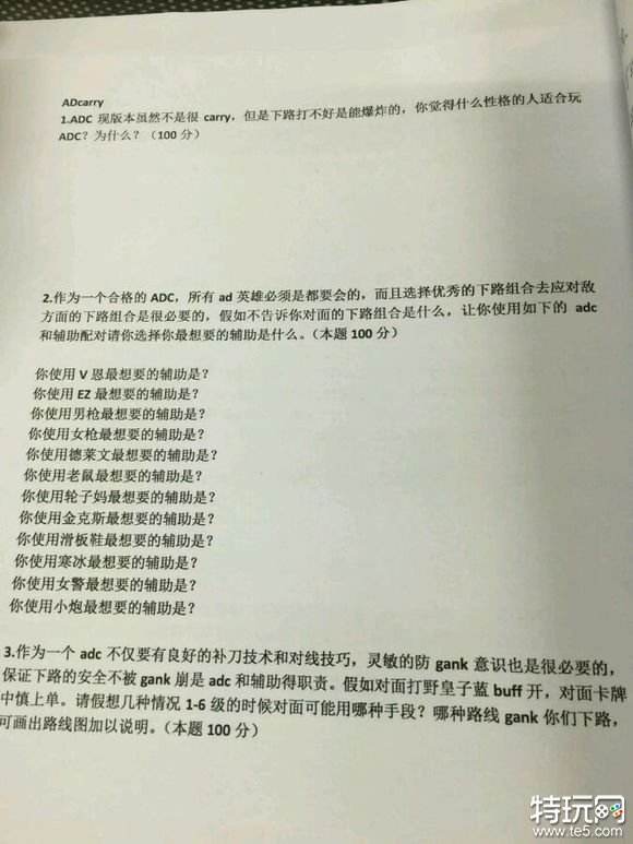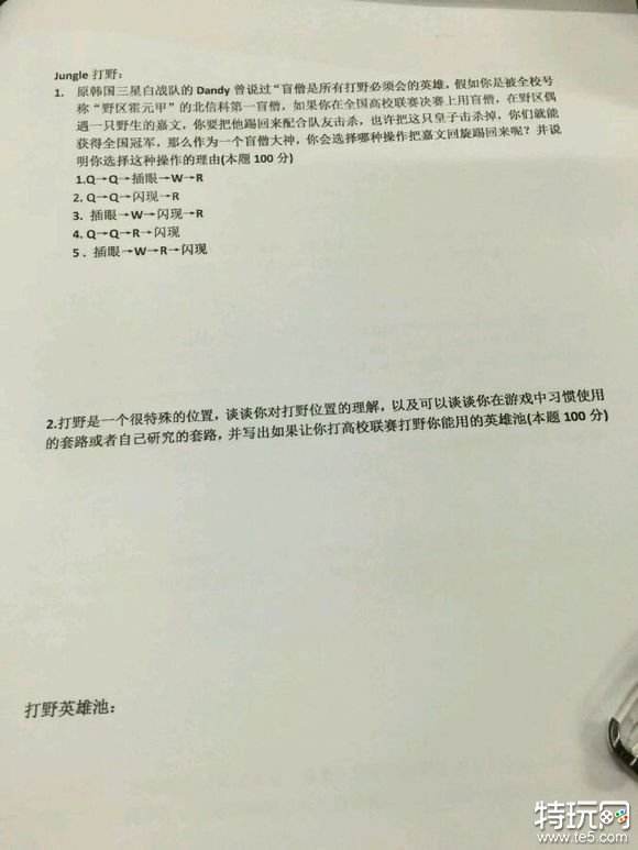 某高校电竞部LOL四级考试题 你能过吗
