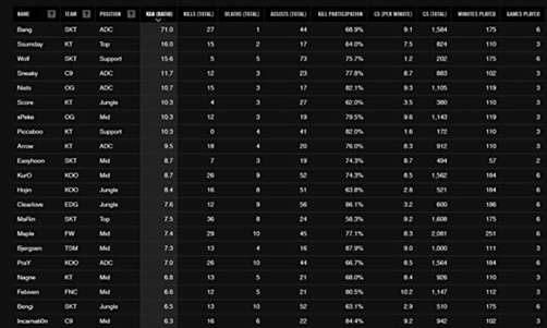 在这次S5世界总决赛之前bang一直只是一个默默无闻的ADC选手,因为韩国有太多著名的ADC选手了。因为在S4时候在韩国有三星双雄ADCIMP和Deft两个著名的ADC压制,SKT甚至没能进入S4世界总决赛。而这一次S5总决赛一切都不一样了,随着LGD和EDG相继出局,再也没有ADC选手能压制bang了。并且bang还保持了小组赛不死的骄人战绩,一度KDA高达71。bang是以稳健而出名的,也就是因为这个不死ADC存在,SKT封王又多了一重保障。