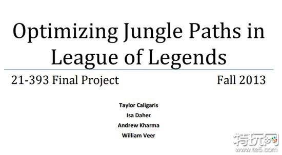 小编甚至还在该校官网中找到了四位学霸在2013年有关于英雄联盟发表的一篇结课设计,题为《Optimizing Jungle Paths in League of Legends(优化英雄联盟中的打野路线)》,有图有表洋洋洒洒15页: