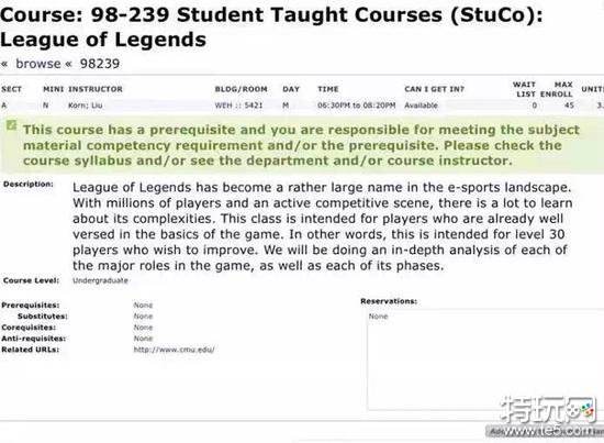 导读:就是这么牛的学校,在他们的2015年秋季课程中,赫然出现了《Student Taught Courses (StuCo): League of Legends》这一条科目!