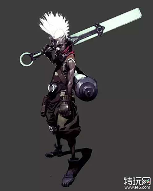 我们可以通过上面这张图片,看到设计师为了凸显时间元素以及塑造艾克的人物性格,舍弃了许多未来风格以及视觉上狂霸酷炫叼的设计。但是我也在很多论坛上看到很多人并没有读懂艾克的设计,很多人根据其脸上的涂鸦和黝黑的皮肤认为这是某个非洲部落的少年,并且在昨天的设计师微博&NGA互动中,很多网友大声质问拳头设计师茂凯:为什么是个黑人!?对此拳头角色设计师肖茂凯的回应是:祖安的人看起来都有些疯狂,辛吉德、蒙多医生,艾克在那个方面跟他们有点类似。但是他并不认为祖安目前的发展方向是对的,他希望用自己的能力创造一个新的祖安,一个和皮尔特沃夫一样有名的祖安。可是他还太年轻,并不知道该怎么做。他一直试图用自己的力量保护自己的朋友,改变祖安的未来,可是有时候他又容易发火、生气,缺乏耐性。他的深肤色和白色莫西干发型,有助于展现那种矛盾的气质吧,至少我们这么认为。